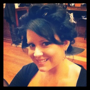 Yours truly allowing my pin curls to set