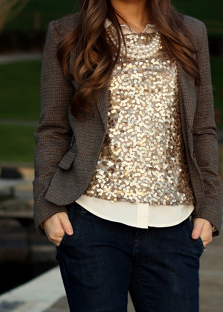 1. I love the idea of trying sequins with a blazer, and it’s a look I do for my job (in the fashion industry). But, I can’t see this working in a law office or a Fortune 500 company.