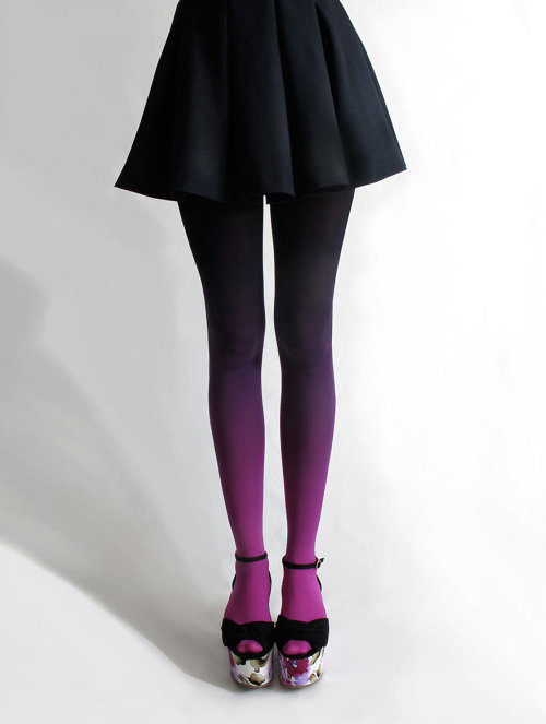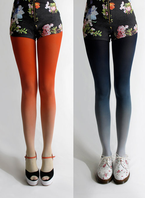Unless you have been living under a rock you know that ombre is a trend that has been around for a while. And it’s not showing any signs of going out of style anytime soon. In fact, the ombre trend has made it’s way to leg wear in the form of tights. I’ve been seeing these fading color tights a lot lately and the more I see them the more I like them. Although I would never wear them myself… I’m not a fan of tights/pantyhose to begin with, but mix that with being only 5’o” tall and I think this trend would make my legs look like stumps.