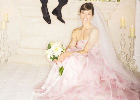 As you know now (unless you’ve been spending your week under a rock) that last weekend Justin Timberlake and Jessica Biel tied the knot in Italy. All this week there has been much to do about the bride’s choice in a wedding gown. The bride wore a petal pink Giambattista Valli Haute Couture gown… yes, Jessica chose to wear a pale pink instead of the traditional white wedding dress (in case anyone is wondering… the groom wore a black Tom Ford tux).