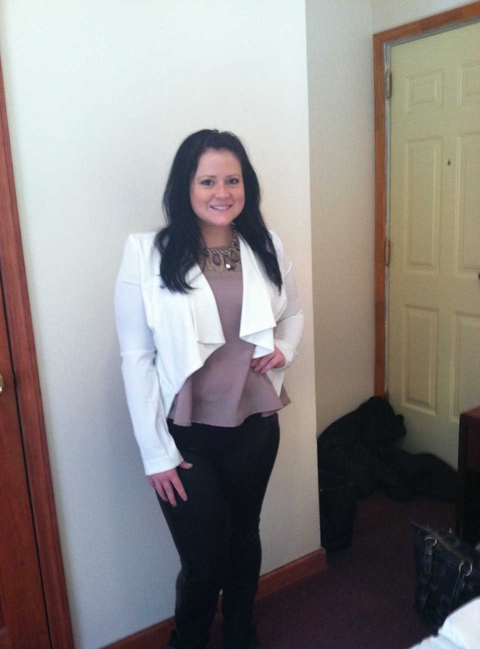 As for my outfit of the day… I wore faux leather leggings from Forever21, a cream blazer and beige and gold sequin halter both from The Pink Tulip Club and my trusty black heel boots.