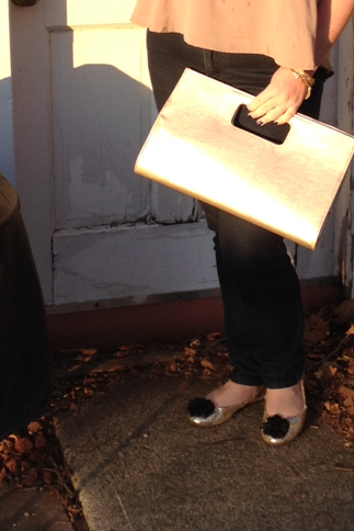 Below you will find my outfit of the day: Thanksgiving edition! I absolutely adore this shirt, but I absolutely loathe the sequin rash. ha ha! The shirt is made by Ya Los Angeles, dark skinny jeans are from New York & Co and the gorgeous metallic gold ballet flats are from The Gap. My accessories… all of my gold bangles as well as my gold clutch are from Charming Charlies.