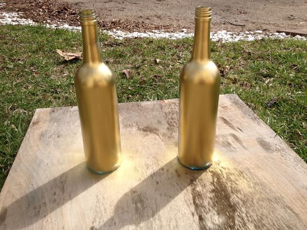 Next up on my to-do list was finally spray painting these wine bottles. I’ve been waiting a couple weeks for a dry and warm day to paint these babies!