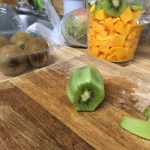 1. In a pitcher, pour the coconut rum over the mango and kiwi. Chill for 1 hour.